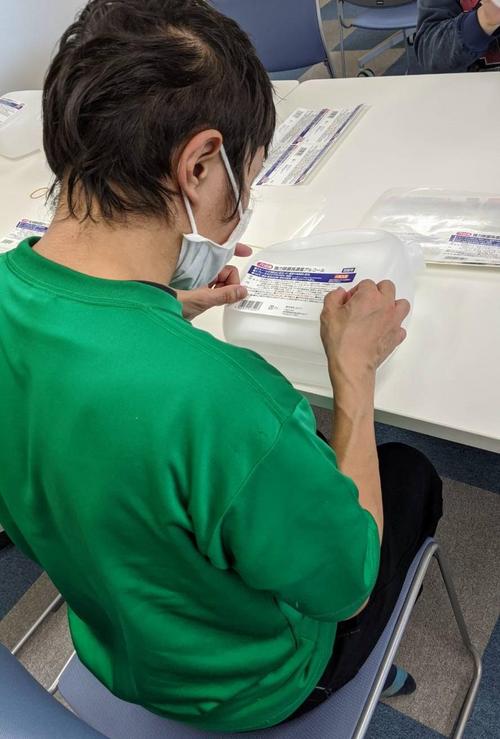 ※作業内容は、容器に商品のラベルを貼る作業です。