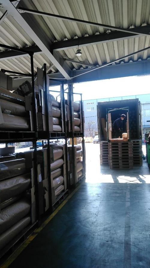 午後からは、ケース商材ではなく反物(ラグ)の入庫。