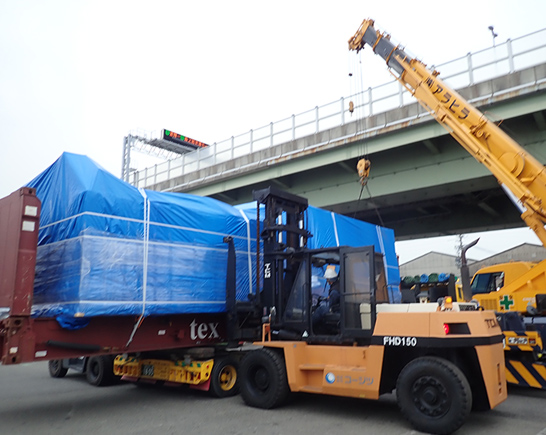 - 機械輸出総容積50m3 40フィートフラットコンテナx1本使用