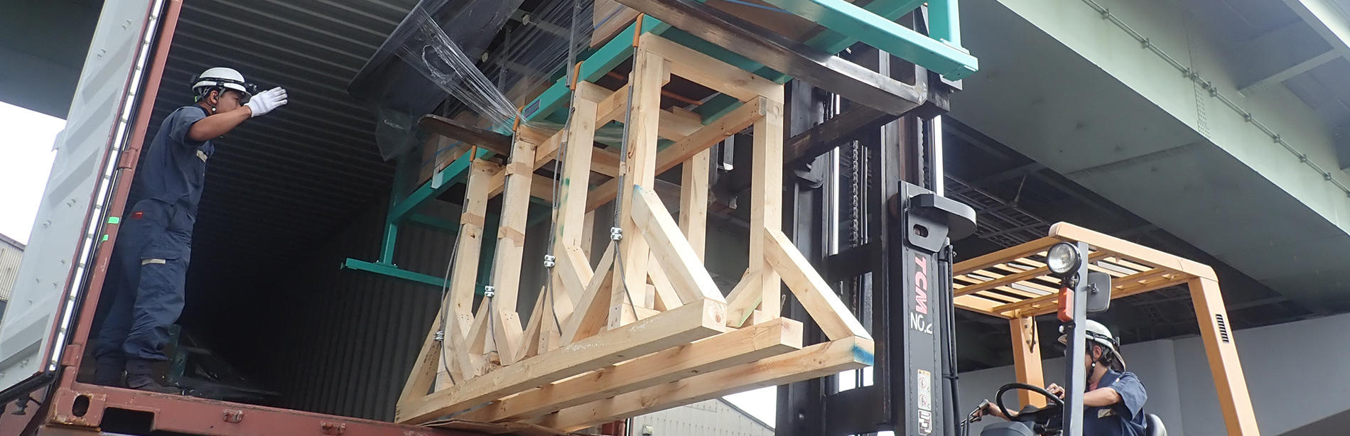 フォークリフトを用いての取り扱いでも製品にダメージを与えることがなく、安全に荷役が可能。 - 木箱に比べてコスト低減が可能。